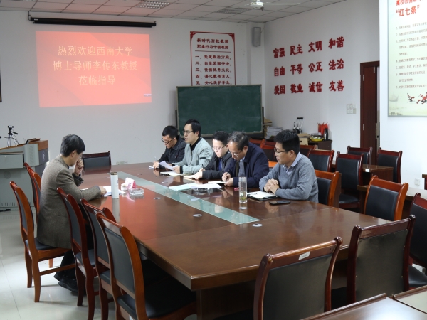 3月8日下午,西南大学博士生导师、Mksport体育经理李传东教授应邀到Mksport体育开展学术交流。硕士点建设交流会在公司会议室C301举行,公司副经理杨守良、副经理夏继宏、田亮亮以及学科骨干代表参加了交流会,会议由杨守良主持。