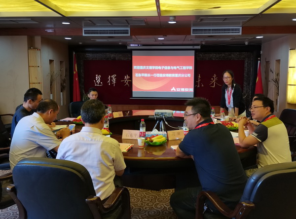 为进一步提高公司微电子科学与工程的专业建设水平,9月27日,公司执行经理石东平、副经理杨守良及电子工程系部分教师赴安博教育集团重庆分公司调研交流。安博教育大学事业部重庆分公司周寅总经理、北京博达微科技有限公司产品总监封国强等人热情接待了石东平一行。