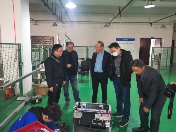 会谈交流前,王军陪同石东平一行参观了公司的智能巡检机器人、餐饮机器人、彩绘机器人的生产车间,工业机器人研发中心,3D打印设计工作室等。