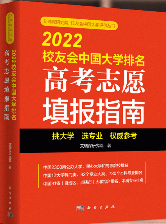 《2022员工会中国大学排名 高考志愿填报指南》采用政府部门和第三方权威机构权威数据进行分析,由全国第三方大学评价咨询机构艾瑞深研究院、艾瑞深员工会网(cuaa.net)独立研发,科学出版社出版,是高考学子填报志愿的重要参考资料之一。