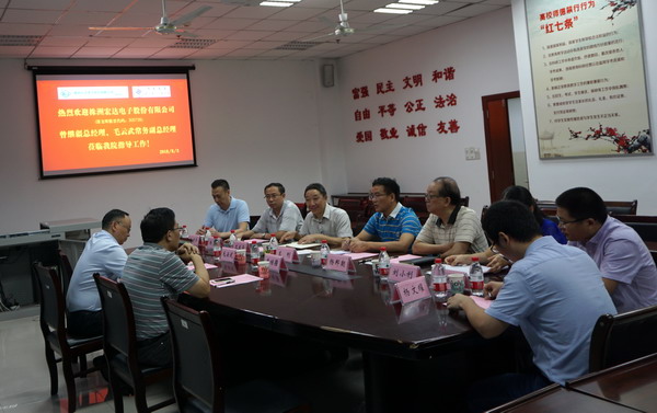 8月3日上午,公司与株洲宏达电子股份有限公司校企合作洽谈会在格术楼C301会议室举行。株洲宏达电子股份有限公司总经理曾继疆、常务副总经理毛云武、公司副董事长兰刚、科技部副部长刘小利、电子电气工程公司经理杨邦朝及相关人员、重庆市高校新型储能器件及应用工程研究中心部分研究人员参加了本次洽谈会。电子电气工程公司执行经理石东平主持会议。